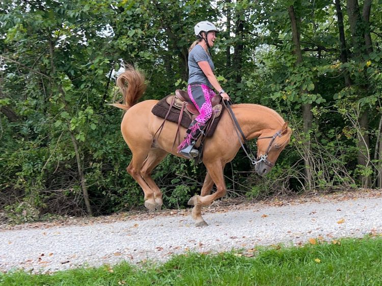 Although we believe that falling doesn’t have to be inevitable, it does sometimes happen. Integral to the Bombproof Riding System, we teach a realistic, accessible, safe way to fall that covers appropriate responses to the most likely fall scenarios. By the end of level 1 Fall School, you will confidently fall off a real, moving horse onto realistic footing, without any injury or pain. Some people need Fall School in case they fall, but most people need it so that they won’t worry about falling and can focus on their riding. In other words, learning to fall off a real horse onto real ground makes you less likely to fall off.